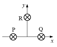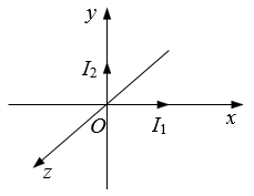 80.如图所示,有两条长直通电导线,沿x轴和y轴放置,电流方向分别沿x轴和y轴的正方向。电流大小I1=I,I2=2I。已知长直通电导线周围某点的磁感应强度可以用公式B=k\(\frac{I}{r}\)表示,式中k为比例常数,I为电流大小,r为该点与导线的距离。