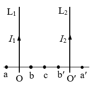65.如图所示,无限长通电直导线L1、L2平行放置,所通电流大小相等,直线aaʹ与L1、L2垂直相交于O和Oʹ,且aO=Ob=bc=cbʹ=bʹOʹ=Oʹaʹ,对于这两根直线电流形成的磁场。下列说法中正确的是( )。