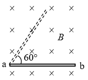 81.如图所示,在磁感应强度为0.1 T的匀强磁场中,放置一根长0.2 m的导线ab。若通以2.5 A的电流时,导线所受磁场力大小为_______N。如果将导线以a端为轴转过60°,到图中虚线位置,则它受到的磁场力大小为_______N。