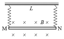 82.如图所示,一根均匀直导体棒质量为m,其两端由两根相同的导电轻质弹簧悬挂在水平位置上,悬点间距离为L,整个装置放在磁感应强度为B、垂直纸面向里的匀强磁场中。为使弹簧不发生形变,则导体棒中所通过的电流方向应为_______,电流大小应为_____A。
