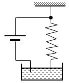 85.如图所示,把一根柔软的螺旋形弹簧上端挂起来,使它的下端和盛在杯里的水银面刚好接触,形成串联电路,接到直流电源上通以电流,可以看到弹簧将( )。