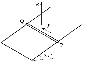 92.如图所示,倾角为37°的光滑斜面上水平放置一条0.2 m长的导线PQ,两端以很软的导线通入5 A的电流,方向如图。当有一个竖直向上、B=0.6 T的匀强磁场时,PQ恰能静止,则导线PQ所受的重力大小为_______N(已知sin37°=0.6,cos37°=0.8)。