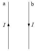 97.如图所示,两根平行的长直导线a和b中通有大小相等、方向相反的电流,此时导线a受到的磁场力大小为F1,当再加入一个与导线所在平面垂直的匀强磁场后,导线a受到的磁场力大小变为F2,则此时导线b受到的磁场力大小变为( )。