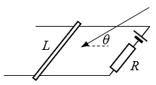 98.如图所示,水平放置的平行金属导轨上放一根质量为m的金属棒,导轨间距为L,金属棒与导轨垂直,导轨右端接一电动势为E、内阻不计的电源与一个阻值为R的电阻,导轨与金属棒电阻均不计,空间有磁感应强度为B、方向向左下方,与水平面成θ角的匀强磁场,导轨光滑,则刚释放金属棒时,棒的加速度大小和方向如何?