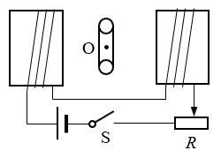 22.给你如图所示器材:原副线圈一组,电键一个,蓄电池一组,滑动变阻器一个,小磁针一个,导线若干。试设计一个实验,以验证产生感应电流的条件。