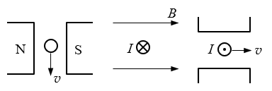 24.如图所示为闭合电路的一部分导体在磁场中运动,电路中产生了感应电流,设感应电流方向、导体运动方向和磁场方向互相垂直,试根据已知的两个量的方向画出第三个量的方向。