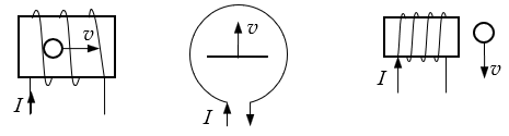 26.如图所示为闭合电路中的一段导体在长直通电导线的磁场中运动,电路中产生了感应电流,试判断各图中的运动导线中的感应电流方向。