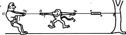 人拉细绳的力与细绳拉人的力;细绳拉猴子的力与猴子拉细绳的力;细绳拉树的力与树拉细绳的力;细绳拉测力计的力与测力计拉细绳的力;猴子受到地球的引力与猴子对地球的引力;人对地面的压力与地面对人的支持力等)
