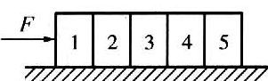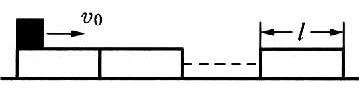 9.10个相同的扁木块一个紧挨一个地放在水平地面上,如图所示。每块木块的质量m=0.40 kg,长l=0.50 m。木块原来都静止,它们与地面间的静、动摩擦因数都为μ1=0.10。左边第一块木块的左端点放一块质量M=1.0 kg的小铅块,它与木块间的静、动摩擦因数都为μ2=0.20。现突然给铅块一个向右的初速度v0=4.3 m/s,使其在木块上滑行,试确定它最后是落在地上还是停在哪一块小块上(设铅块的线度与l相比可忽略 )。