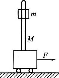 59.如图所示,小车上有一竖直杆,总质量为M,杆上套有一块质量为m的木块,杆与木块间的动摩擦因数为μ,小车静止时木块可沿杆自由滑下。问:必须对小车施加多大的水平力让车在光滑水平面上运动时,木块才能匀速下滑?