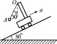 61.如图所示,质量为0.2 kg的小球A用细绳悬挂于车顶板的O点,当小车在外力作用下沿倾角为30°的斜面向上作匀加速直线运动时,球A的悬线恰好与竖直方向成30°夹角。问 :