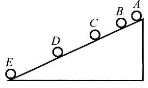 62.如图所示是光滑斜面上由静止开始自由下滑的小球的闪光照片,已知闪光频率是每秒10次,图中AB=2.4 cm,BC=7.4 cm,CD=12.4 cm,DE=17.4 cm,据此估算斜面的倾角大小。(g=10 m/s2)