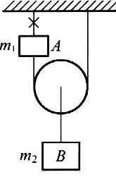 68.如图所示,绳子不可伸长,绳和滑轮的重力不计,摩擦不计。重物A和B的质量分别为m1和m2,求当左边绳上端剪断后,两重物的加速度。