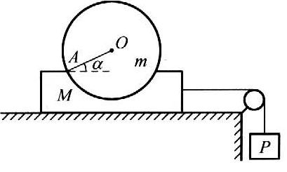 69.如图所示,光滑的圆球恰好放在木块的圆弧槽内,它们的左边接触点为A,槽半径为R,且OA与水平面成α角。球的质量为m,木块的质量为M,M所处的平面是水平的,各种摩擦及绳、滑轮的质量都不计。则释放悬挂物P后,要使球和木块保持相对静止,P物的质量的最大值是多少?