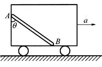 73.如图所示,在以一定加速度a行驶的车厢内,有一长为L、质量为m的棒AB靠在光滑的后壁上,棒与厢底面之间的动摩擦因数为μ0,为了使棒不滑动,棒与竖直平面所成的夹角θ应在什么范围内取值?