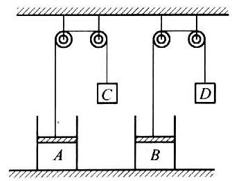 4.A、B为两个相同的固定在地面上的气缸,内部有质量相等的同种气体,且温度相同,C、D为两重物,质量mC>mD,按如图所示方式连接并保持平衡。现使它们的温度都升高10℃,不计活塞质量及滑轮系统的摩擦,则系统重新平衡后( )