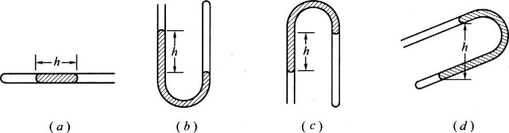 11.如图所示,水平放置的一根玻璃管和几个竖直放置的U形管内都有一段水银柱,封闭端里有一定质量的气体,图(a)中的水银柱长度和图(b)、(c)、(d)中U形管两臂内水银柱高度差均为h=10cm,外界大气压强p0=76cmHg,则四部分气体的压强分别为pa=________cmHg,pb=__________cmHg,pc=_______cmHg,pd=_________cmHg。