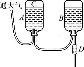 (D)随着液面下降,A瓶内C处气体压强保持不变