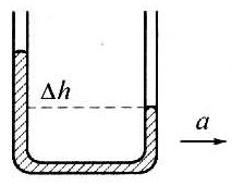 16.如图所示.粗细均匀的U形细管水平部分长为L,管中盛有一定质量的液体,当U形管以加速度a向右运动时,两管中液面的高度差Δh=_______。