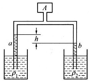 18.如图所示,两边容器里液体的密度为ρ1,右边容器里液体的密度为ρ2,a、b两管液柱的高度差为h,容器A中气体的压强为_______(已知大气压强为p0)。