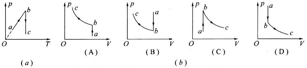 55.如图(a)所示,p-T图上的abc表示一定质量理想气体的状态变化过程,这一过程在p-V图上的图线应是图(b)中的( )