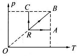 56.一定质量的理想气体,从状态R出发,分别经过如图所示的三种不同过程变化到状态A、B、C。有关A、B、C三个状态的物理量的比较,下列说法中正确的( )