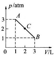 60.一定质量的理想气体的状态变化过程如图中直线段AB所示,C是AB的中点,则( )