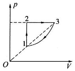 62.一定质量的理想气体,由初态温度为T1的状态1作等容变化到温度为T2的状态2,再经过等压变化到状态3,最后变回到初态1,其变化过程如图所示,则图中状态3的温度T3=__________。