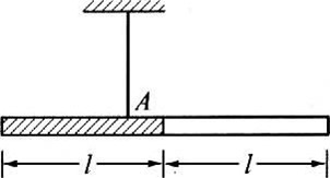 26.两根均匀的不同金属棒,密度分别为ρ1、ρ2,线膨胀系数分别为α1、α2长度都为l,一端粘合在一起,温度为0℃,悬挂棒于A点,棒恰成水平并静止,如图所示.若温度升高到t℃,要使棒保持水平并静止,需改变悬点,设位于B,求AB间的距离(粘合剂的质量忽略不计)。