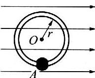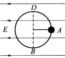 5.如图所示,竖直放置的光滑圆环上,穿过一个绝缘小球,小球质量为m,带电量为q,整个装置置于水平向左的匀强电场中。今将小球从与环心O在同一水平线上的A点由静止释放,它刚能顺时针方向运动到环的最高点D,而速度为零,则电场强度大小为多大?小球到达最低点B时对环的压力为多大?