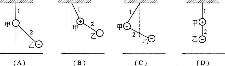 (A)A往左偏离竖直方向,B往右偏离竖直方向
