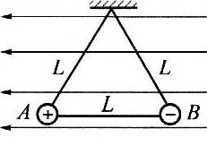 24.如图所示,两根长为L的丝线下端悬挂一质量为m、带电量分别为+q和-q的小球A和B,处于场强为E,方向水甲向左的匀强电场之中,使长度也为L的连线AB拉紧,并使小球处于静止状态,问E的大小满足什么条件才能实现上述平衡状态?