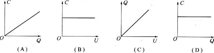 64.如图是描述一给定的电容器充电时电量Q、电压U、电容C之间的相互关系图,其中正确的是图( )