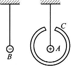 66.如图所示,将悬在细线上的带正电的小球A放在不带电的金属空心球C内(不与球壁接触),另有一个悬挂在细线上的带负电小球B向C靠近,于是( )