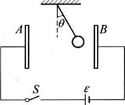 73.平行板电容器的两板A、B接于电池两极,一个带正电小球悬挂在电容器内部,闭合电键S,电容器充电,这时悬线偏离竖直方向夹角为θ,如图所示,那么( )