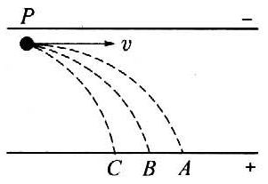 78.如图所示,三个质最相等的,分别带正电、负电和不带电的小球,以相同速率在带电平行金属板的P点沿垂直于电场方向射入电场,落在A、B、C三点,则( )