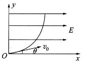 82.质量为m、电量为-q的带电粒子,从图中的O点以初速度v0射入场强为E的匀强电场中,飞出电场时速度恰好沿y轴的正方向(与电场垂直)。在这过程中,带电粒子动量的增量大小为______,动能增量为______(带电粒子所受的重力忽略不计,v0与x轴方向夹角为θ)。