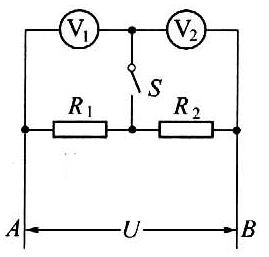 9.如图所示的电路中,R1=R2=2 kΩ,电压表V1的内阻为6 kΩ,电压表V2的内阻为3 kΩ,AB间的电压U保持不变,当电键S闭合后,它们的示数变化是( )