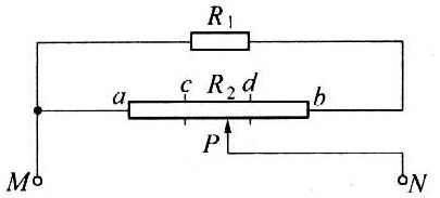 11.如图所示,电阻R1=6 Ω,R2为滑动变阻器末接入电路时两固定端a、b之间的电阻,c、d两点将R2等分为三段。按图接好电路后,发现将滑片P分别滑到c点和d点时,M、N间电路的等效电阻之比为3∶4。把上述电路的M、N两端接到电动势为E、内电阻为r的电源两极上。当滑片P位于d点时,R2上损耗的电功率P1=36 W。如果P移到b端,那么R1上损耗的电功率P2≥36 W。求电动势E和内电阻r的取值条件。