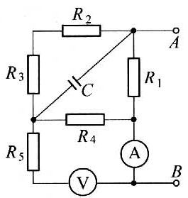 (1)在A、B两点间接入电池,其电动势ε=5.7 V,内阻可忽略,求通过电池的电流;