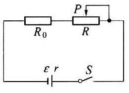 95.如图所示,电池组的电动势为E,内电阻为r,R0为定值电阻,R为变阻器,已知R0>r。为使R0上消耗的电功率最大,应将变阻器阻值调整到( )