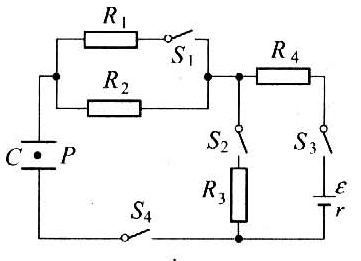 101.如图所示的电路中,电键S1、S2、S3、S4均闭合,C是极板水平放置的平行板电容器,极板间悬浮着一油滴P,欲使P向下运动,应断开电键( )
