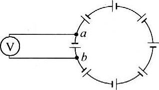 102.如图所示,八个完全相同的电池依次首尾相接后,用一电压表测量图中a、b两点的电压,已知每个电池的电动势为E,内阻为r,电压表对电路的影响不计,则电压表的示数为________V。