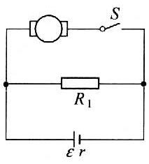 105.如图所示,电阻R1=8 Ω,电动机绕组电阻R0=2 Ω,当电键S断开时,电阻R1消耗的电功率是2.88 W;当电键S闭合时,电阻R1消耗的电功率是2 W,若电源的电动势为6 V。求电键闭合时电动机输出的机械功率。