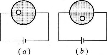111.如图所示,两个完全相同的均匀圆形合金片上各开了一个等大的小孔。现按(a)、(b)两种连接方式接在电路上。若两个电池的规格相同,内阻不计,在相等的时间内,合金片发热较多的接法是( )