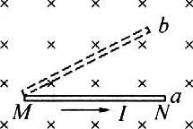 24.如图所示,通电导线MN在纸面内从a位置绕其一端M转至b位置时,通电导线所受安培力的大小变化情况是( )。