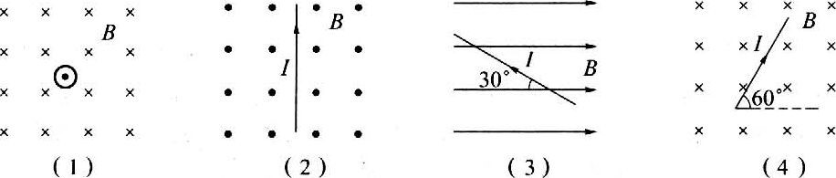 25.将长度为20 cm、通有0.1 A电流的直导线放入一匀强磁场中,电流与磁场的方向如图所示。已知磁感应强度为1 T,试求下列各图中导线所受安培力的大小并在图中标明方向。