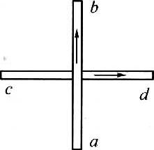 27.如图所示,两根互相绝缘、垂直放置的直导线ab和cd,分别通有方向如图的电流,若通电导线ab固定小动,导线cd能自由运动,则它的运动情况是( )。