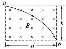 47.如图所示,一电子从a点以速度v垂直进入长为d、宽为h的矩形磁场区域,沿曲线ab运动,通过b点离开磁场。已知电子质量为m,电量为e,磁场的磁感应强度为B,ab的弧长为s,则该电子在磁场中运动的时间为( )。