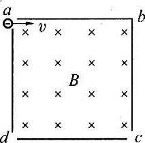 49.如图所示,将截面为正方形的真空腔abcd放置在一匀强磁场中,磁场方向垂直纸面向里。若有一束具有不同速率的电子由小孔a沿ab方向射入磁场,打在腔壁上被吸收,则由小孔c和小孔d射出的电子的速率之比vc/vd=________。